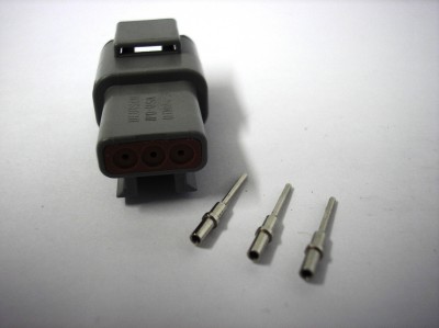 3 Way DTM Receptacle Connector supplied as a complete connector with terminals.