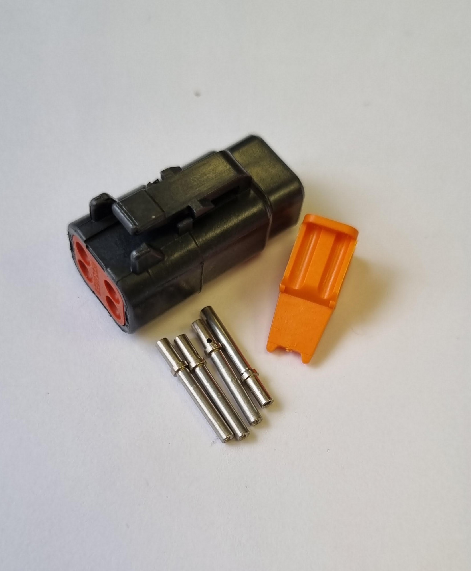 4 Way DTM Plug Connector supplied as a complete connector with terminals.