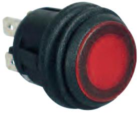 Amber LED illuminated latching push button switch with 4.8mm blade terminals.