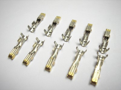 Econoseal 1.5mm gold-tipped female terminals. For use when signal connections are needed. For power connections use tinned contacts.