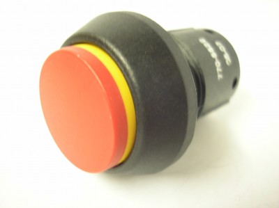 Red latching push button switch, 22.5mm diameter panel cut out required for mounting.