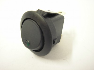 Rocker switch with green illumintaed LED, 4.8mm blade terminals.